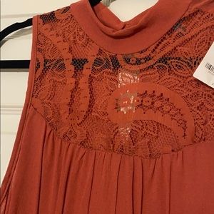 Cute tank top with lace detail. Collar with button feature and keyhole on back.