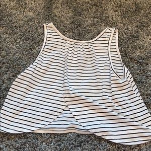White tank top striped with black with a winged back that opens