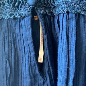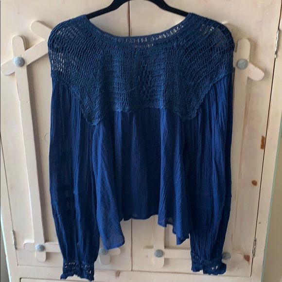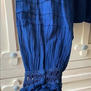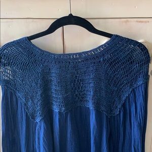 Navy cotton gauze top. Crochet on top and at wrist. Buttons and keyhole in back.