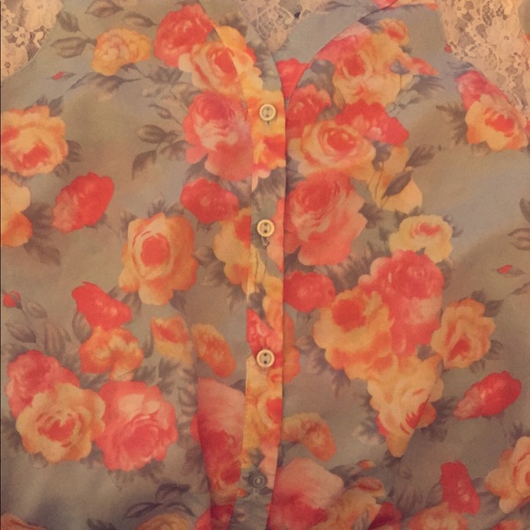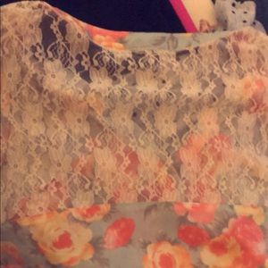 Soft blue flora top with lace back