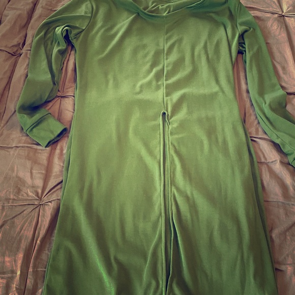 Long top, stops at calf. Opens at the waist line.