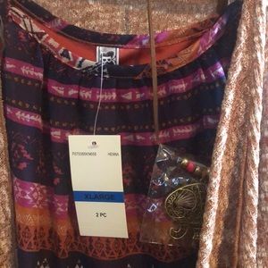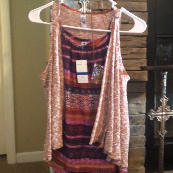 Multi colored tank with tan and white vest. Comes with elephant necklace. Perfect condition. Perfect for capris or shorts.
