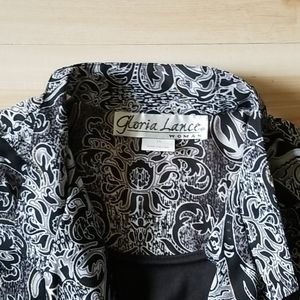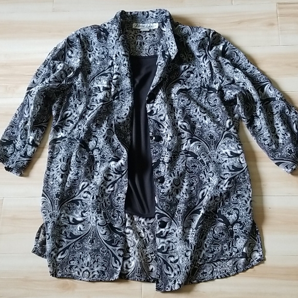 Black and white w gold highlights mid button sleves w black camisole liner