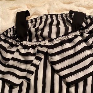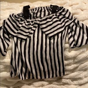 Off the shoulder top. This top is so cute. It is black and white vertical strips. It has black straps over the shoulders. You could always remove these if you didn’t want them on.