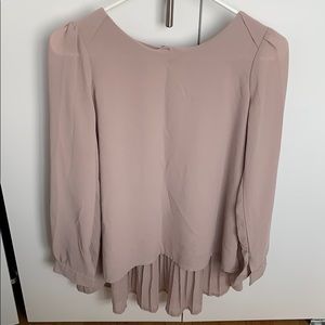 Dressy blouse with semi shear sleeves and pleated back