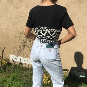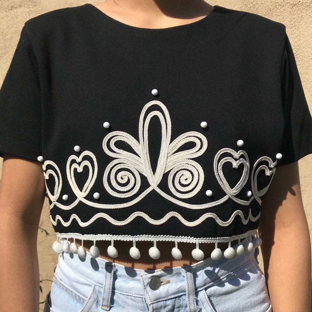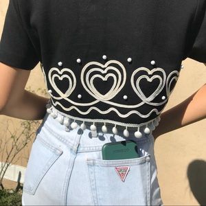 Vintage cropped heart embroidered top • seen on a xs model • in excellent condition •