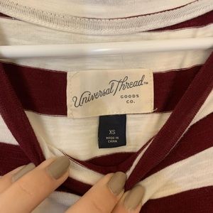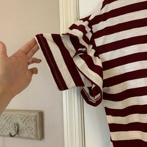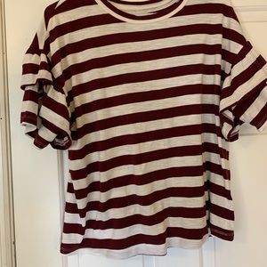Ruffle sleeved stripe shirt. Burgundy and white. Sizes XS, fits like a M
