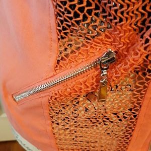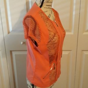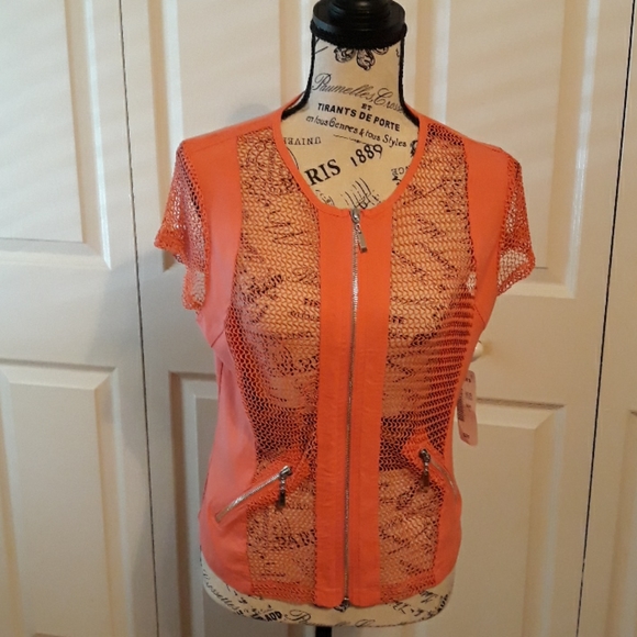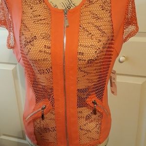 NWT Fancy ,beautiful top,colorful ,stretch,netting material on front and sleeves, zipper on front and packets.