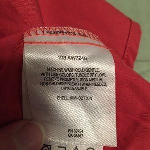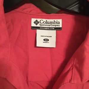 NWOT. Columbia Sportswear 3/4 sleeve turned up cuff (no button). Button front. Color: not red! It’s more “salmon”, “watermelon” color. Armpit to armpit 28”. Length measurements from neck tag/stitching to bottom of shirt 28”. It’s a beautiful shirt. Perfect for a brighter Autumn or Summer color and an excellent choice for career wear. Washed once at the time of purchase and hung to dry. Fabric: cotton.