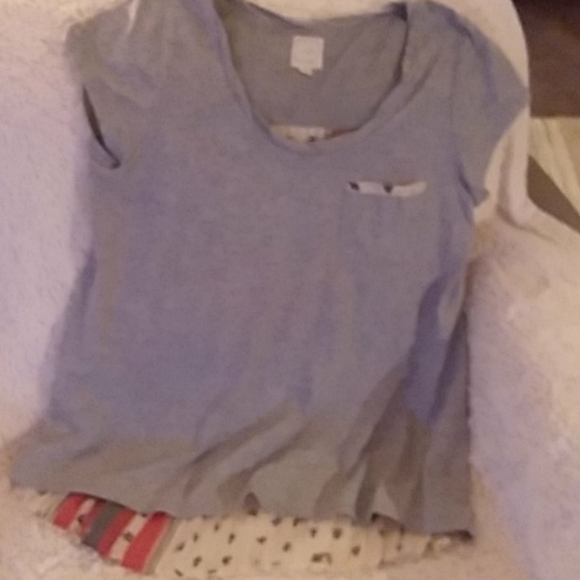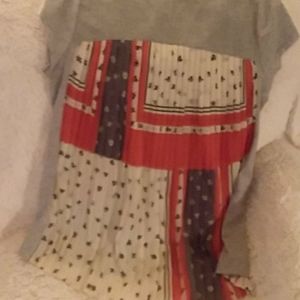 Perfect condition! This top has alot of details going on! Short sleeves, pocket in front, high low hem, tunic style, pleated different material covering the back...very cute!