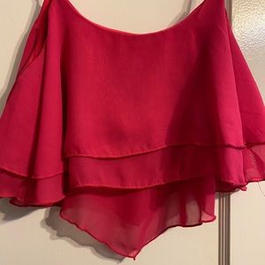 This is a cute tank crop top. Unfortunately the iron got it a little bit but you can’t even tell when you wear it. Been worn like 2 times