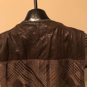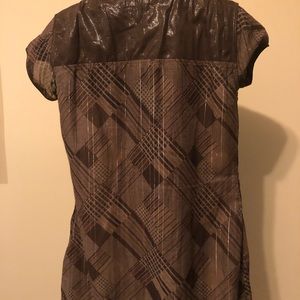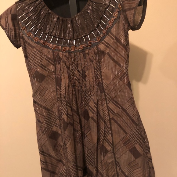 Chocolate leather collard pleated dress w nice details/ gorgeous in person