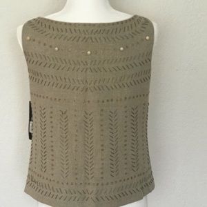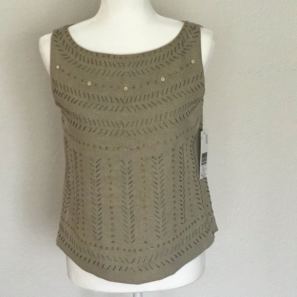 Super sleek brand new size 4 Ellen Tracy top with lining . Sleeves Zip up/clasp closure in left side . Profession design with beaded embroidery design around chest and neckline . Color will flatter skin tone .