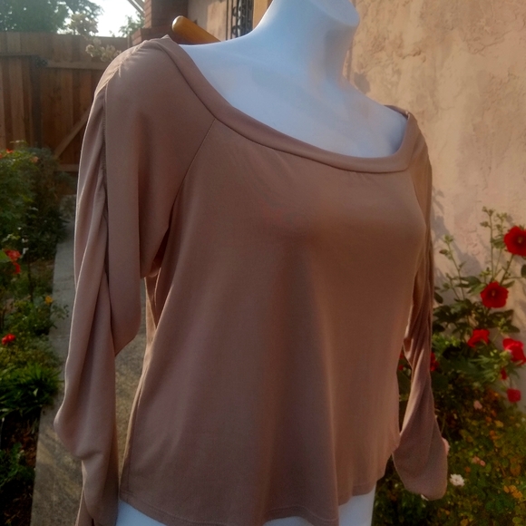 Shoulder are also rouche. Coco color on the nude color side as well.