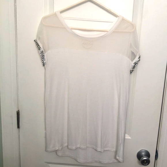 White shirt with rhinestones on the sleeves