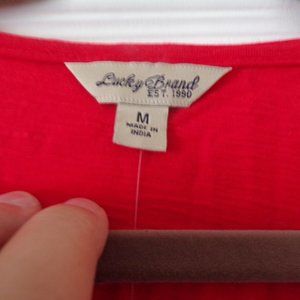 How about a pop of red? Pair this with a jacket for a fun look! Shirt has puffed embroidery throughout. Very cute and very versatile!