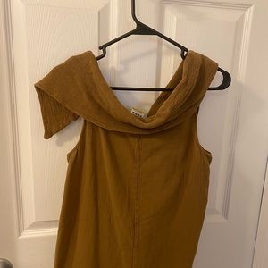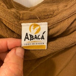 This a beautiful Abaca brand slightly off the shoulder top made of 100 % Algodon fabric. The color is a Carmel.