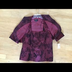 Great for night out or wedding. Burgundy jacket with matching camisole. Both have matching embroidery and beading