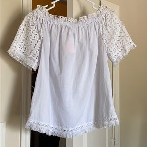 Off shoulder white top, never worn— has tags! Got it from a cute little boutique.