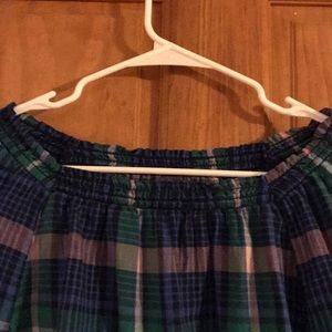 Plaid top with wide neck, worn 1x