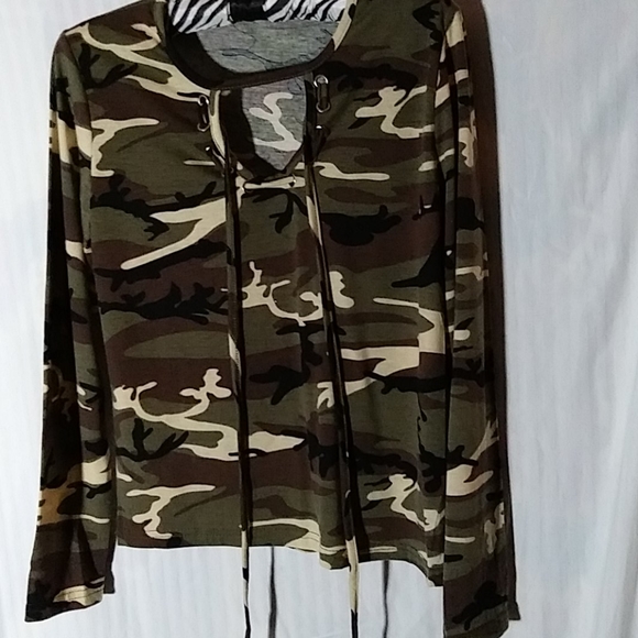 Camo top, x- small, cotton/ polyester, new w/o tags