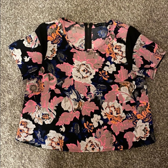Worn Pure Sugar slightly cropped top , multi color flower designs