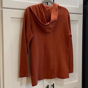 Waffle knit, hooded top. Rust color. Size small/medium (8-10)