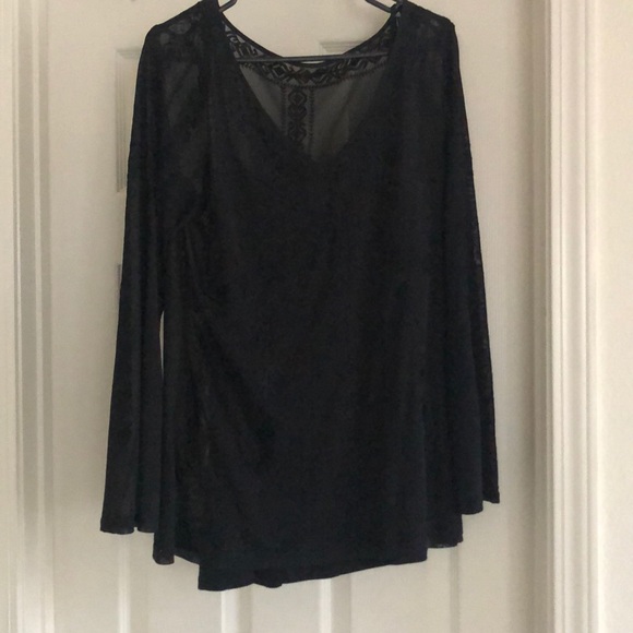 Black with nice embroidery embellishment. Shear outer with black tank underneath. Bell sleeves. Never worn
