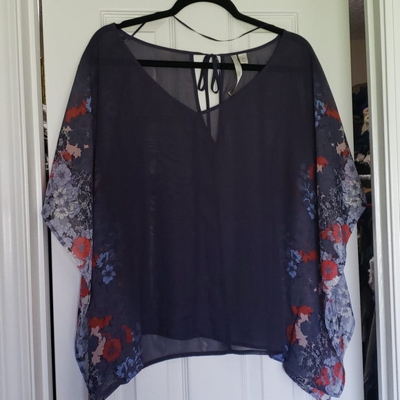 Never been worn. Tags were removed. Top is sheer with flutter sleeves.