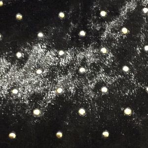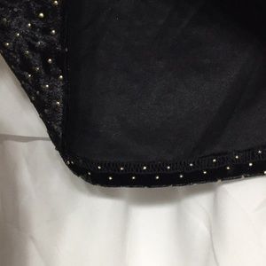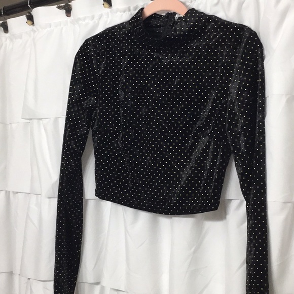 Long sleeve cropped top. Zip up back. Soft velvety material with gold studs on shirt. Worn once for a few hours inside (just to take pictures).