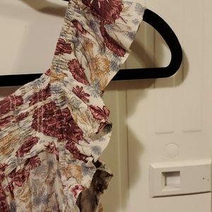 Floral top with some detail on the top and flutter sleeves