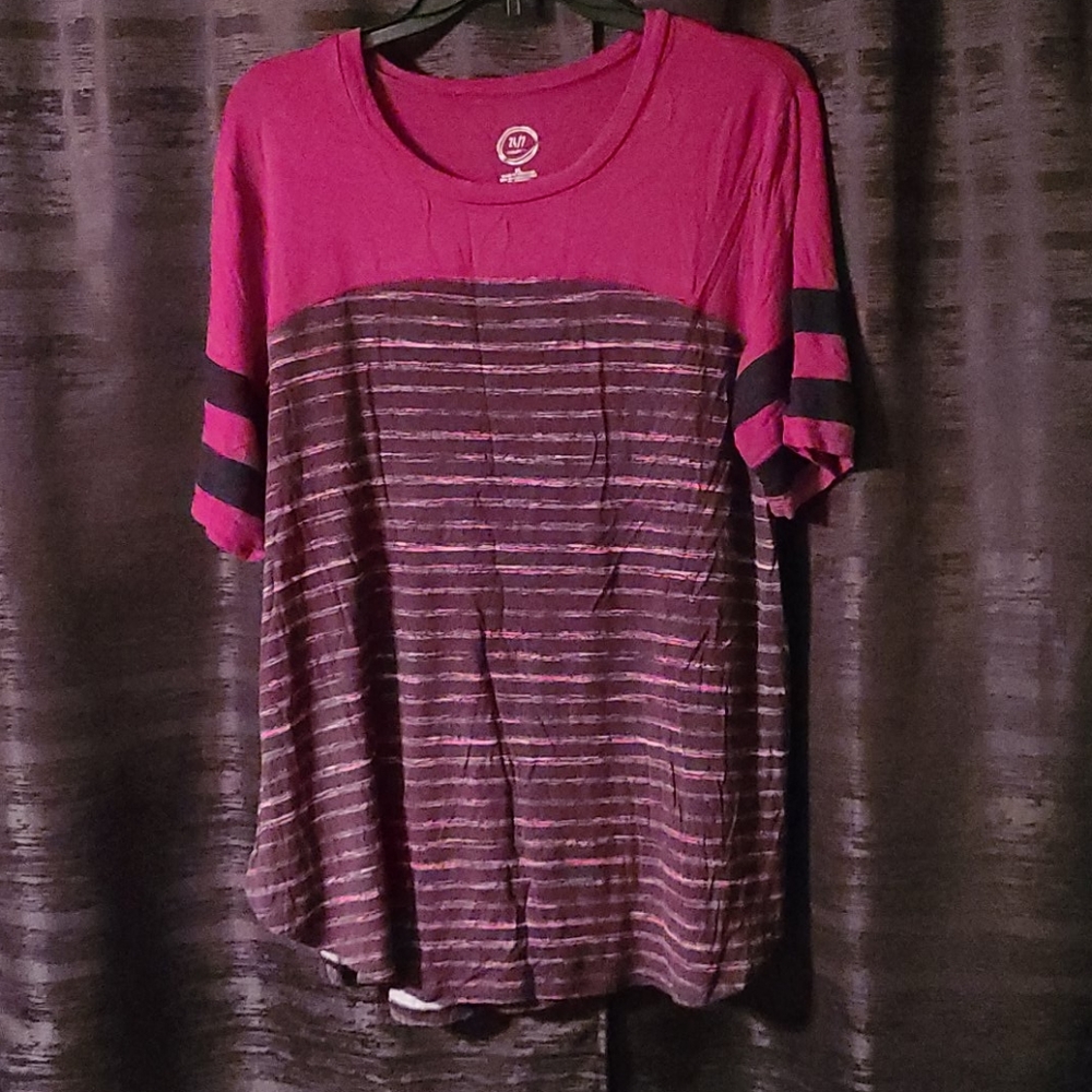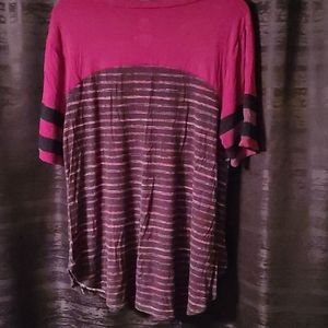 Maroon top with detailing stripes of grey and pink along with Maroon (picture looks more pink than in real life)