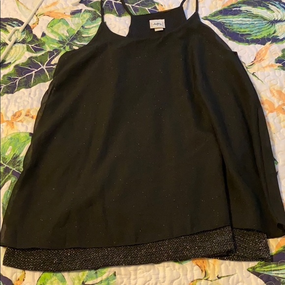 Dressy tank, black sheer on outside, gray sparkly underlay