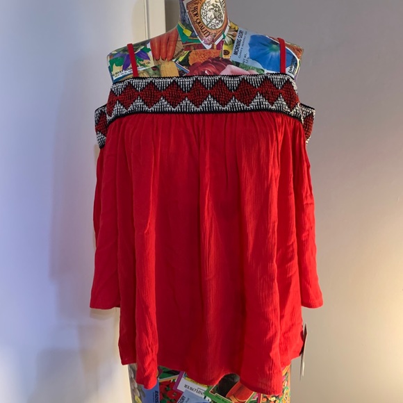 Brand new off the shoulder top from Macy’s with tags. Can wear with spaghetti straps or hide them. Non smoking home.