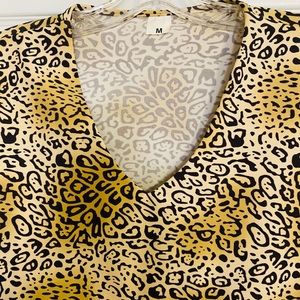 Fun leopard top with 3/4 sleeve and v neck. Animal print is all the rage this year!