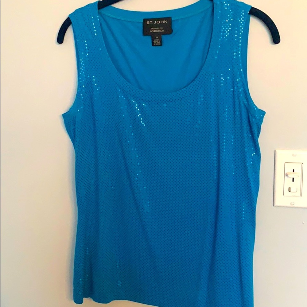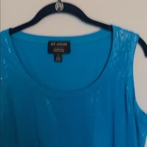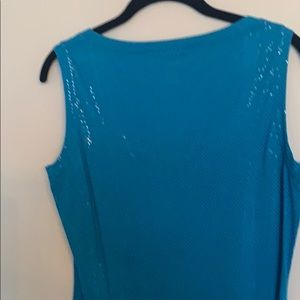 Beautifully sequined, aqua colored scoop neck top. Never worn.