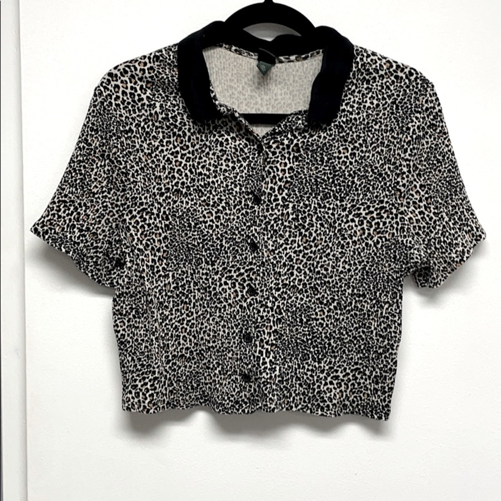 Wild Fable leopard crop top. I buy larger sizes on crop tops so they can fit me like regular shirts. Super stretch cotton.