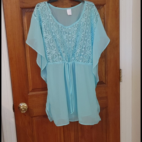 See through top, perfect for beach cover up or with a camisole or tank underneath.