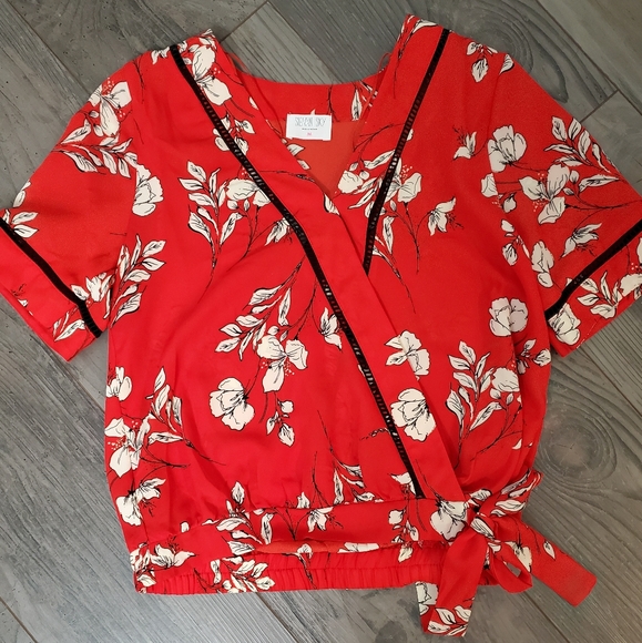 Red. Size medium. Cute tye on the side. Worn one time.