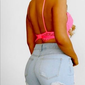 lace bralette crop top with under wire and partial lining coverage.neon pink.