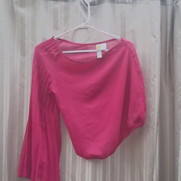 Pleated one shoulder crop sheer top
