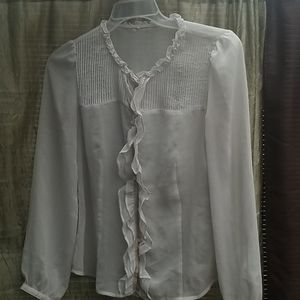Sheer button front ruffle blouse