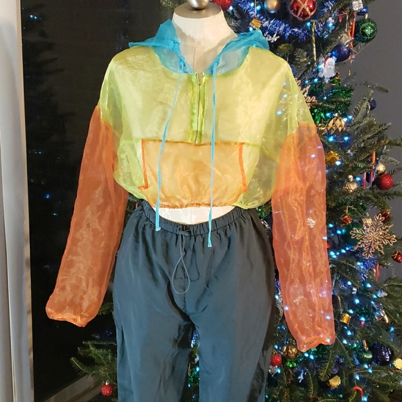 Quarter length sleeve crop top with hood multicolor 100% Polyester