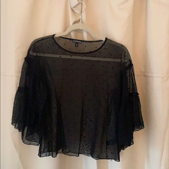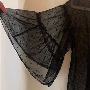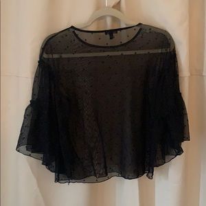 Sheer polka dot top with ruffled sleeves.