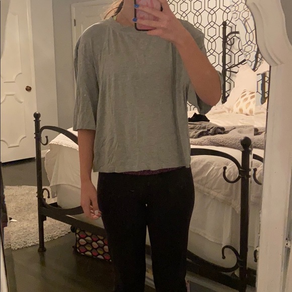 Very soft comfy tee shirt. More boxy fit. Super cute with leggings or joggers!