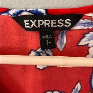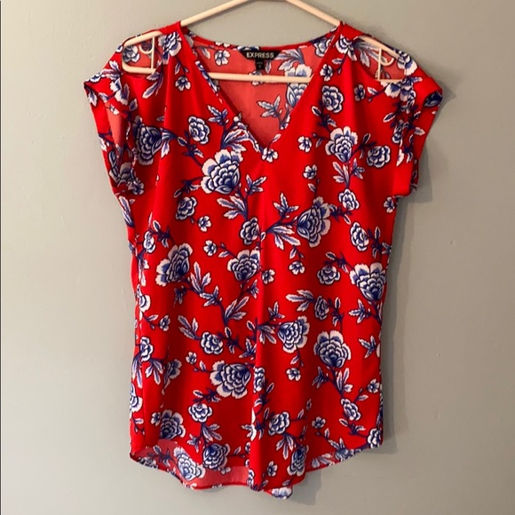 Express blouse. Red with blue and white floral. Size small. Like new condition.