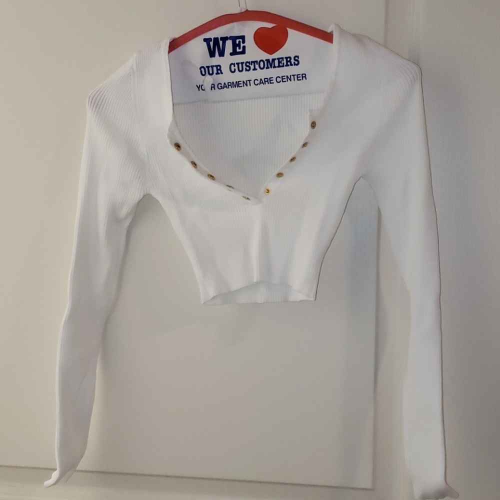 Cute white crop top, only wore once. Top is in great condition. Does not have a lot of stretch. Size small