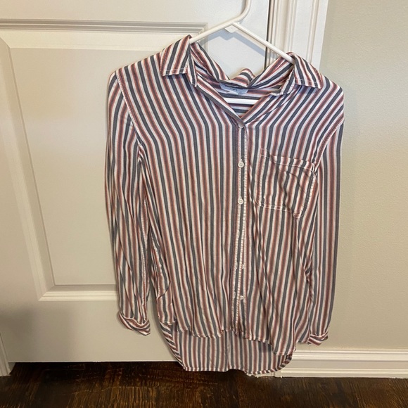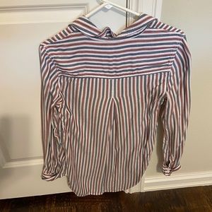 Button down top. Orange and black stripes.