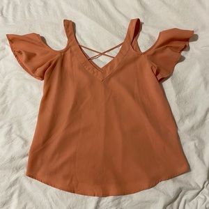 It’s a simple yet detailed top loose fitting and very comfy! Works great alone or under a jacket!