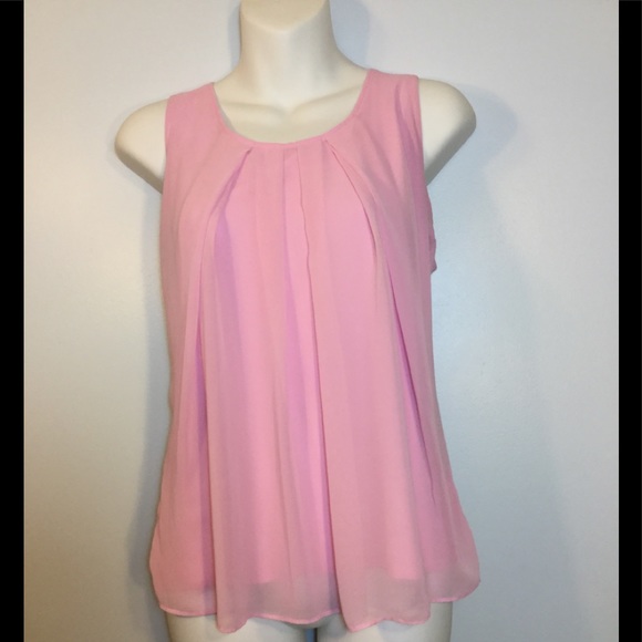 Sleeveless, pink, chiffon overlay, a little larger than a typical small